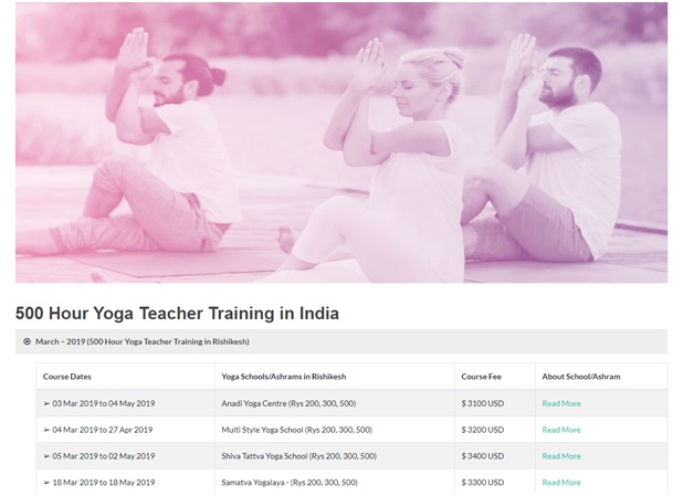 This is another place in Rishikesh where yoga training is held. The 500-hour teacher training course in India is run according to the stipulations laid down by the Yoga Alliance for yoga schools that are registered with it. The recognized yoga schools are registered as RYS 200 and RYS 300 to run the more advanced 500-hour yoga teacher training after the foundational 200-hour yoga teacher training course in Hatha and Ashtanga yoga.
