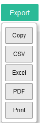 - Export: This will let you download all the transactions loaded with applied filters. You can copy and download the list in CSV, Excel, or PDF format or print directly.