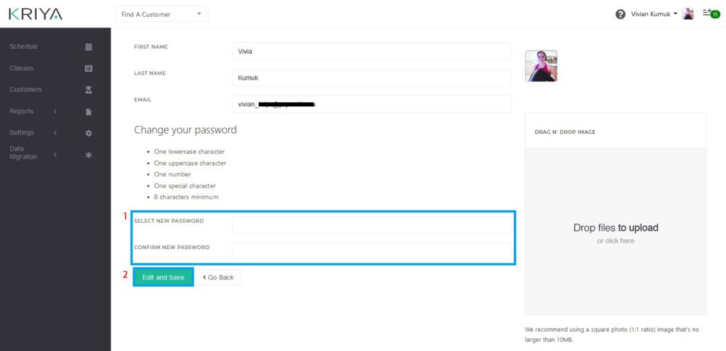 3. On this Profile Page, you can change your First Name, Last Name, Email, and Password and upload a new Profile Picture too.