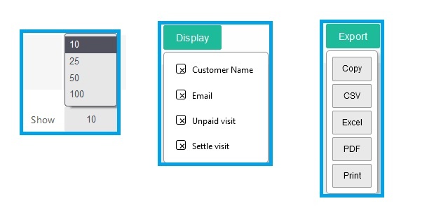 Unpaid visits have all the needed data columns, and each row shows information about a single customer, like customer name, customer email, unpaid visit details, and a settle visit link to that customer’s profile. Let us see them.