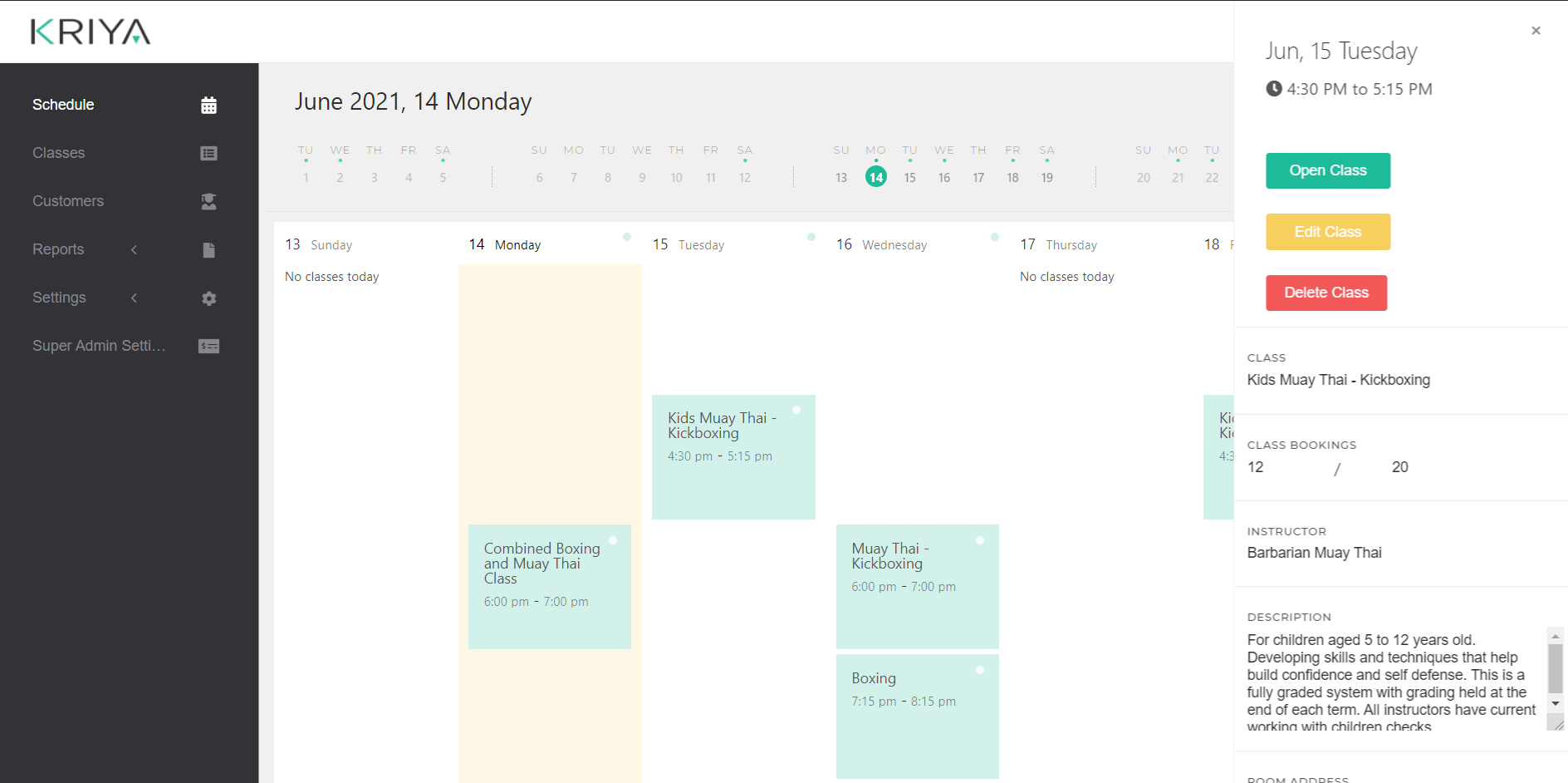 Features from KRIYA to manage your Boxing and Martial Art Classes